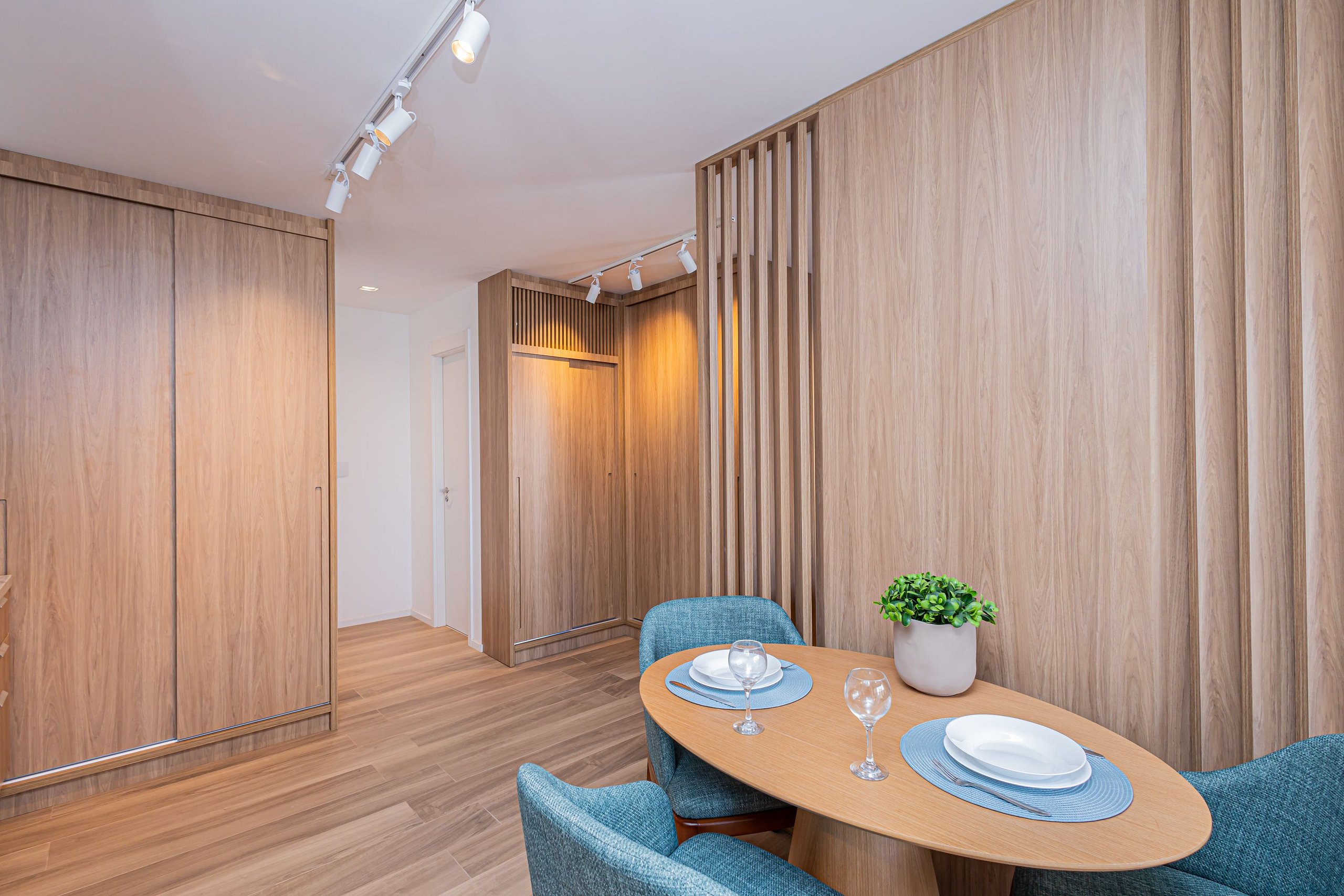 Este elegante apartamento de um dormitório oferece o equilíbrio perfeito entre conforto e praticidade. Com uma suíte espaçosa, você encontrará um refúgio tranquilo para relaxar após um longo dia. A cozinha ampla e equipada com utensílios modernos. A sala de TV é um convite ao entretenimento, com um espaçoso sofá-cama de casal, garantindo acomodação extra para visitantes. O enxoval de cama e banho segue o padrão de hotelaria, proporcionando uma experiência luxuosa e aconchegante.